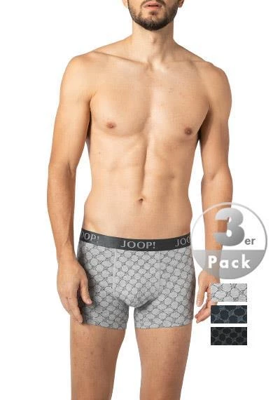 JOOP! Boxer 3er Pack 30030784/960 Trunks, Baumwoll-Stretch, Grau-schwarz-navy, Blau-grau-schwarz