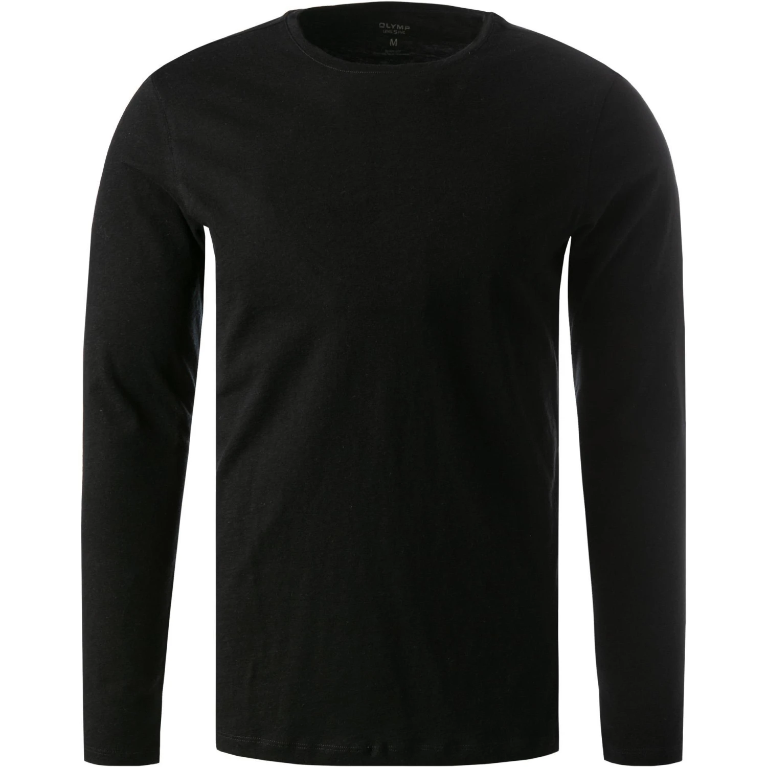 OLYMP Casual Level Five B. Fit T-Shirt 5641/14/68 Longsleeve, Body Fit, Baumwolle-Seide, Schwarz meliert, Schwarz